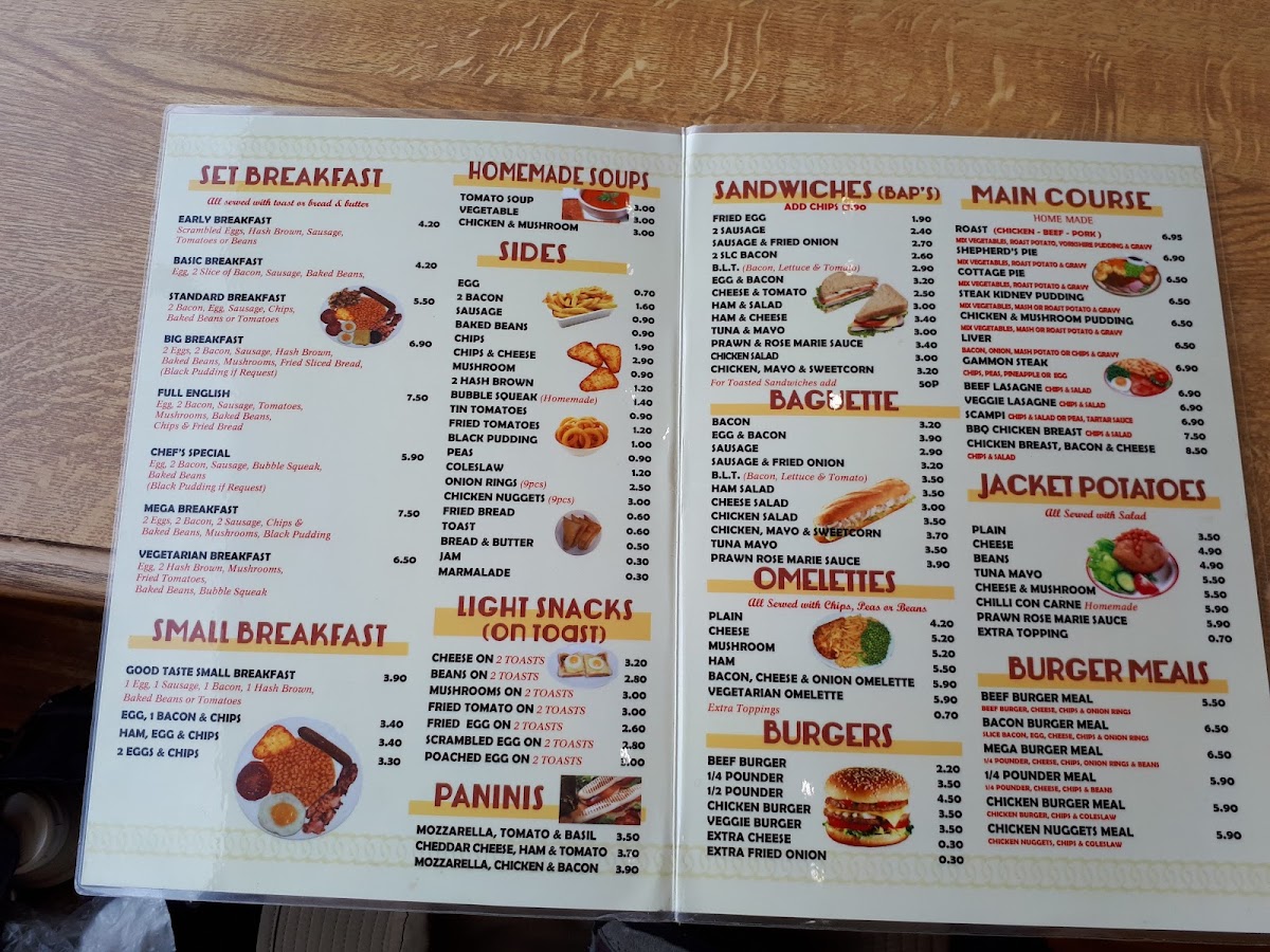 Welcome to Good Taste Cafe, a charming eatery located at 24 High St, Walton on the Naze CO14 8BB. Here, delicious British cuisine takes center stage. The menu is diverse, featuring enticing sandwiches like the classic BLT, as well as comforting main courses such as Shepherd's Pie and Beef Lasagne. For breakfast lovers, the extensive choices, including large portions, guarantee satisfaction.